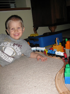 Rhonen received this wooden train set for Christmas and it is now his FAVORITE toy! He plays with it everyday and loves to construct the track. He even creates little cities with his blocks and other toys. He is very creative and we love to see what he comes up with!